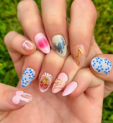 "I wanted the quality and detail of a hand-painted set without the gaudy charms, sparkles, and confusing size charts. I wanted designs that weren't boring or machine-printed. I wanted the conveniency of a press-ons that was also made with actual salon-grade material, structure, and looked like nails. I wanted a set with 24+ nails and size-inclusive so I didn't have to measure or compare confusing size charts. I couldn't find these press-on anywhere....so I built them and decided to share them with the you!"